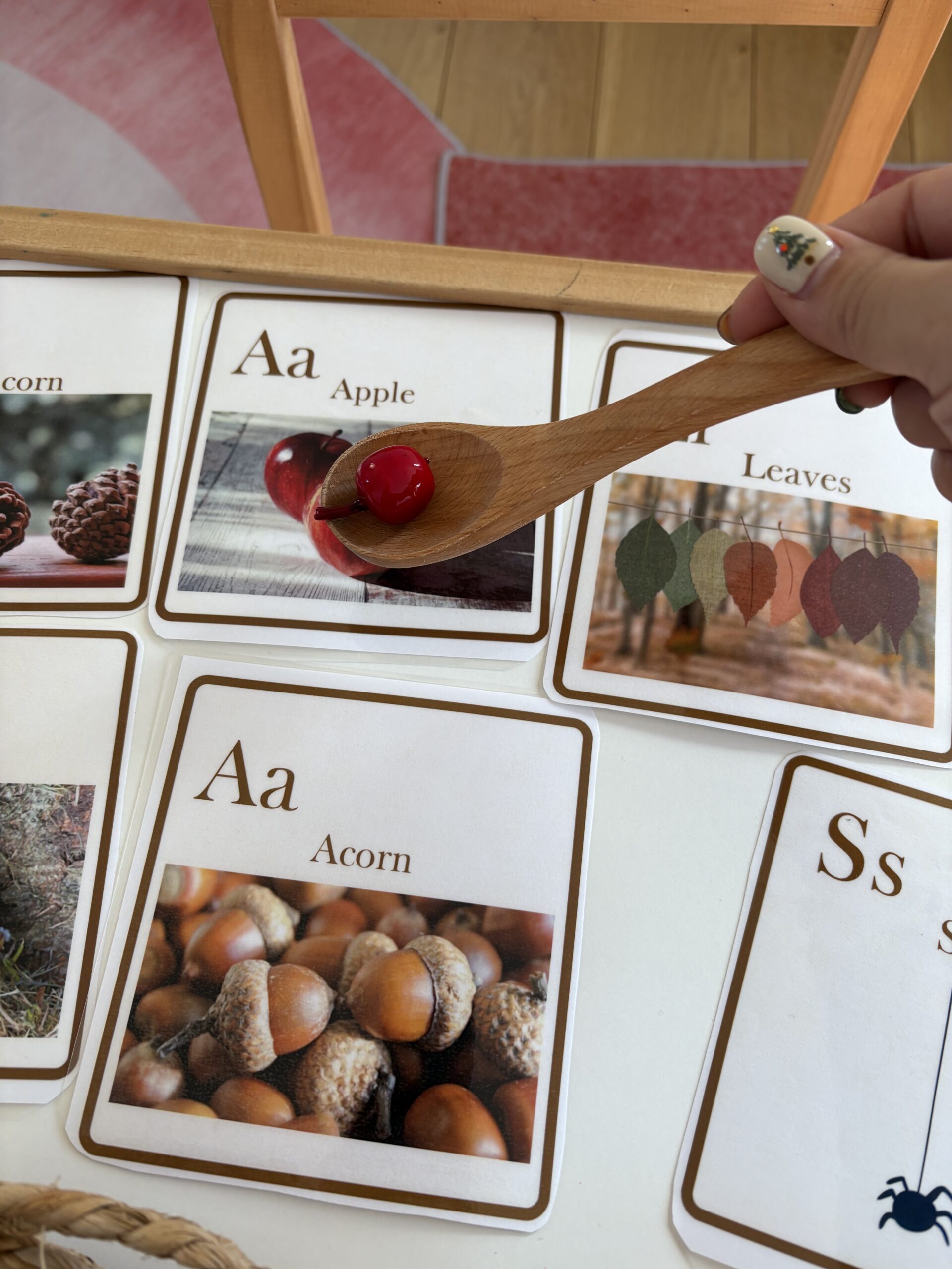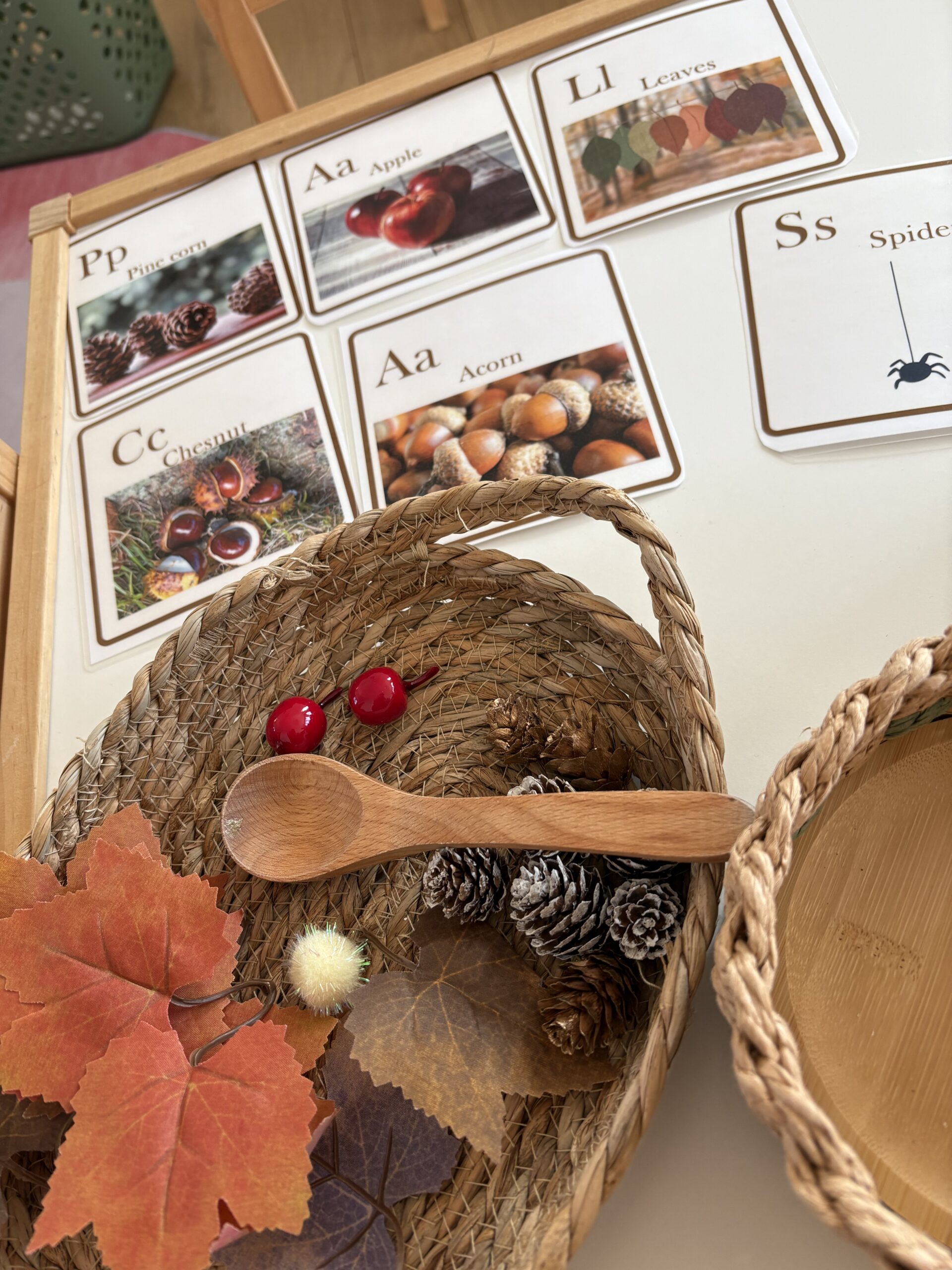 “November Fun: Picking, Carrying, and Placing Apples & Acorns – A Montessori Activity”